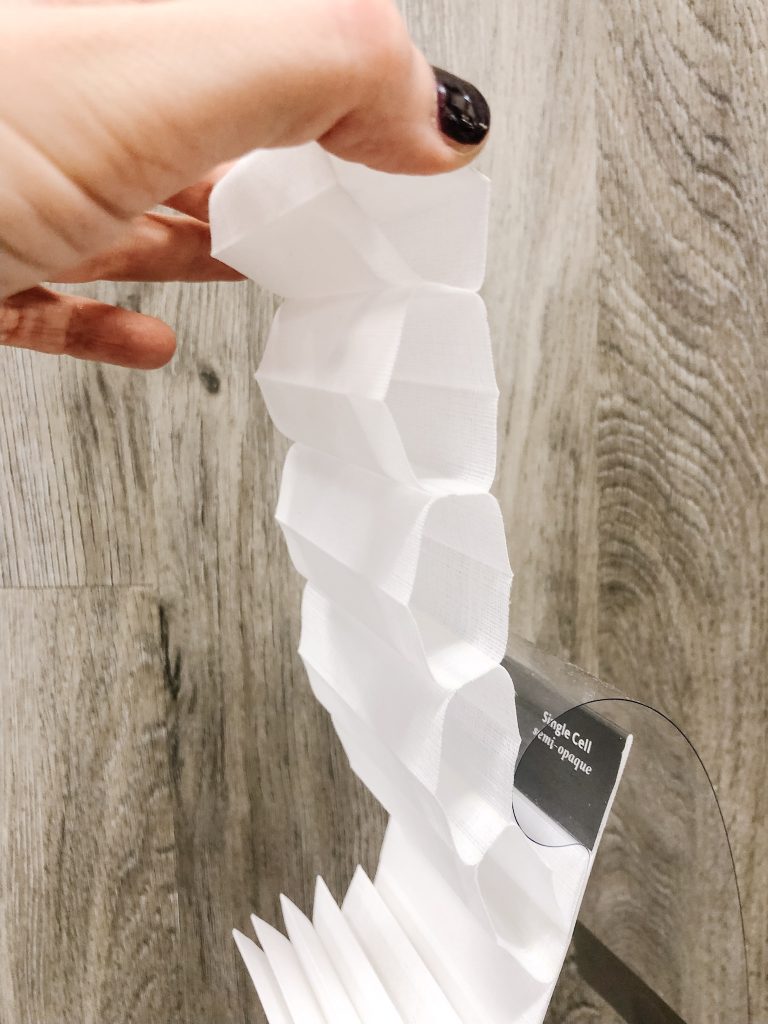 Cellular blinds come in both standard and black-out option. If you’re someone who likes complete darkness when you sleep, black-out would be the perfect option for you! You can see in the photo below the difference between the materials used for standard verses black-out…Always note that black-out is an upgrade from the standard material.